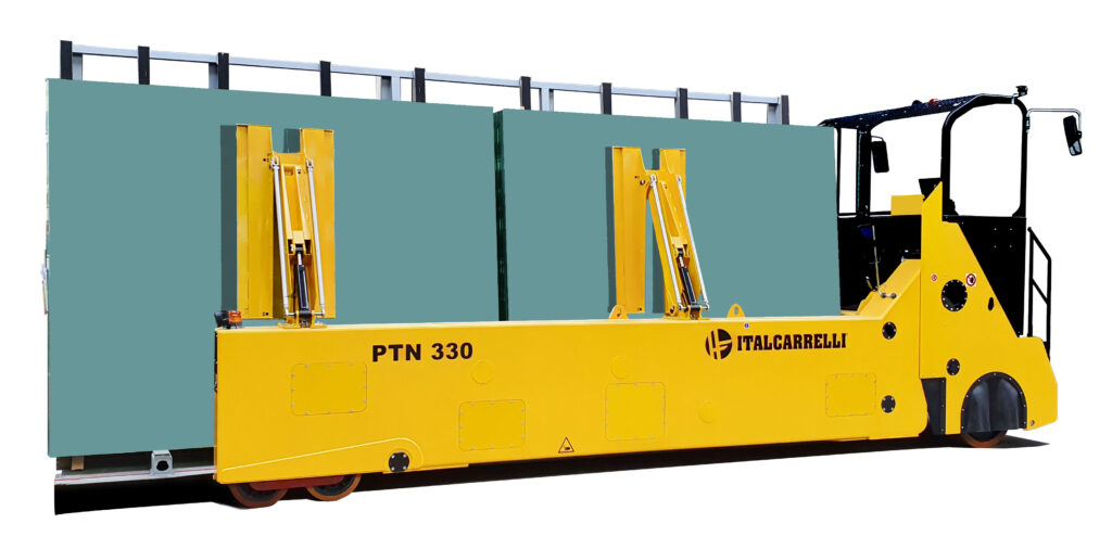 Self-propelled transporters, Inloader transporters, Multidirectional side-loaders, Special equipment for glass handling, Trucks for glass handling inside closed top containers.